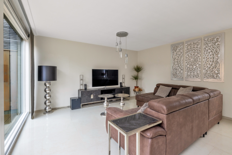 De aan de achterzijde gelegen uitgebouwde woonkamer (ca. 57 m2) heeft een diepte van ruim 11 m en is over de gehele breedte voorzien van een schuifpui, ook vernieuwd in 2024.